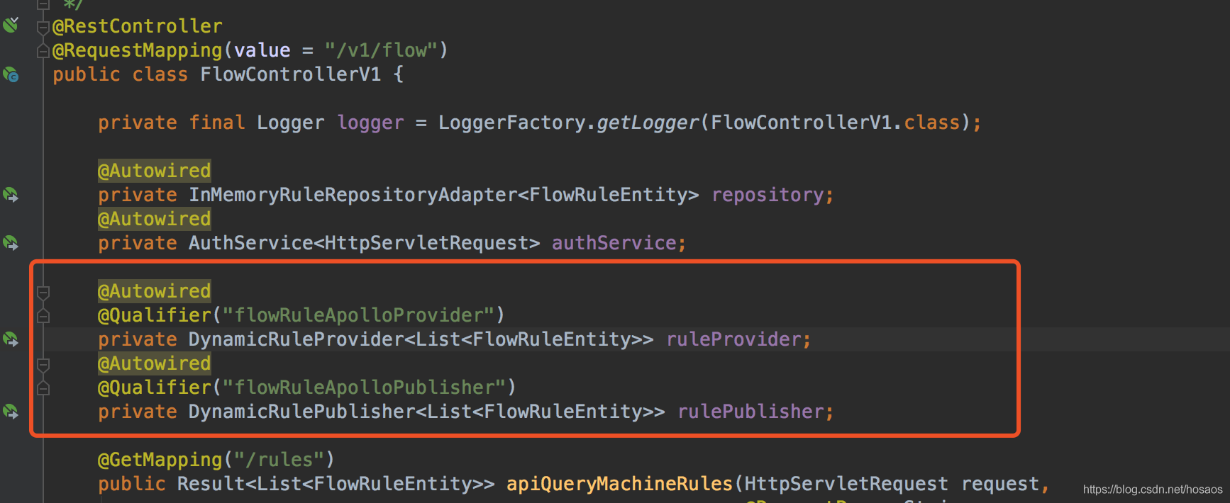 1、先注入flowRule对应类型的规则拉取,推送实现类