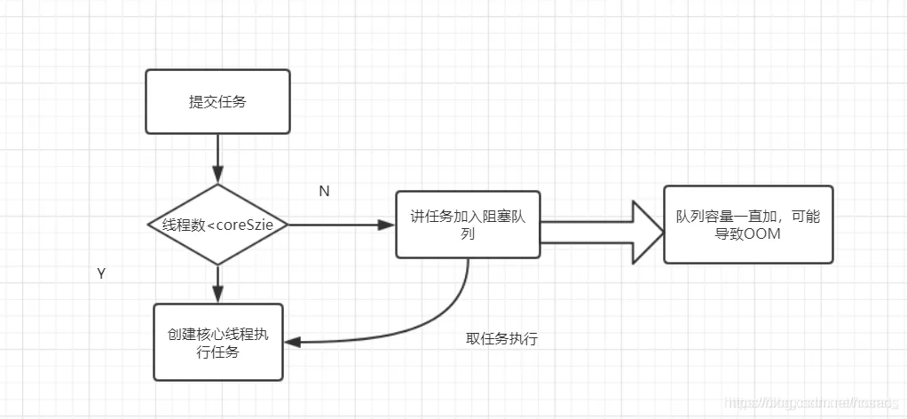 所以假设程序中不小心写了个死循环,不断往该线程池中提交任务,则队列中会不断塞入任务,最终导致OOM