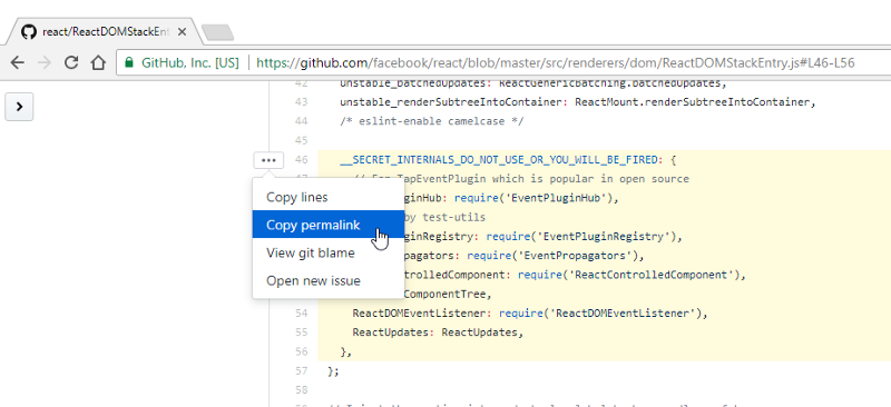 现在可以共享该 URL 了,但这些还是会指向当前分支。 如果文件改变了怎么办? 当前状态下文件的永久链接(permalink )即可解决该问题。