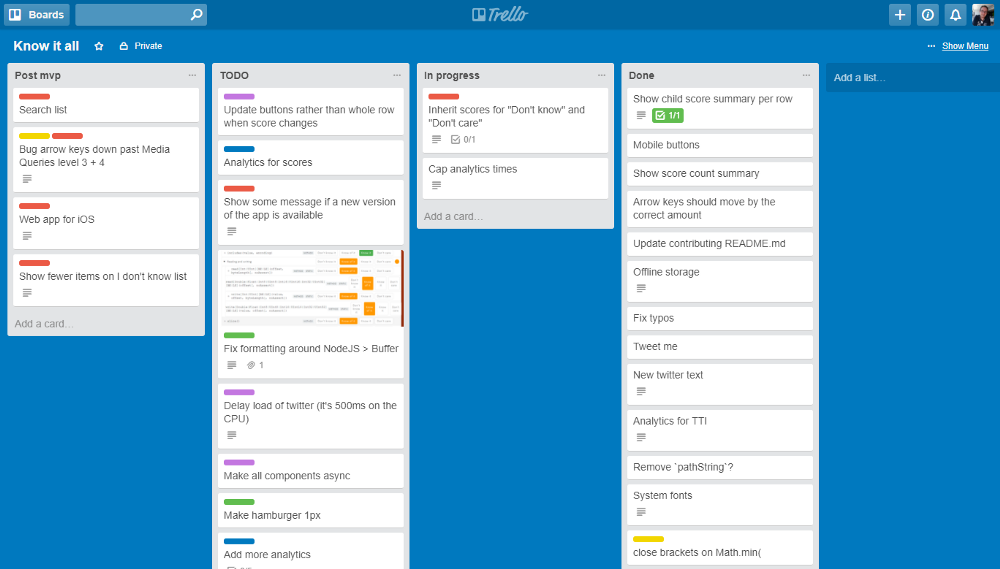 我一直使用 Jira 来做大项目,而对于个人项目,我一直在使用 Trello,我非常喜欢它们。