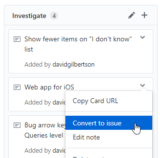 为了方便,我将上述的项目都添加为“笔记” 。但是,在 GitHub 中管理任务的功能是与仓库的其余部分集成在一起,因此你可能希望将现有问题添加到备份库中。