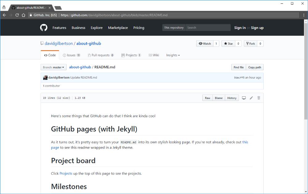 最简单的是,GitHub 页面 + Jekyll 将以漂亮的主题呈现你的 README.md。 例如,我们可以看一下 about-github 的 readme 页面: