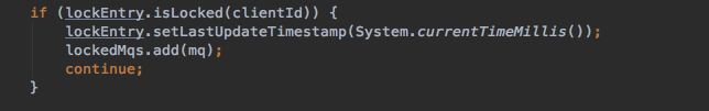 总而言之,broker端通过对ConcurrentMap<String, ConcurrentHashMap<MessageQueue, LockEntry>> mqLockTable的维护来达到messageQueue加锁的目的,使得同一时刻,一个messageQueue只能被一个消费者消费