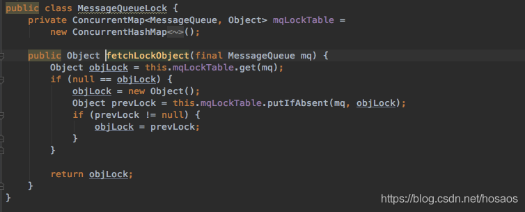 其中维护了一个ConcurrentMap<MessageQueue, Object> mqLockTable,使得一个messageQueue对应一个锁对象object