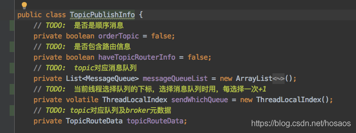 TopicPublishInfo即为Topic对应的路由元数据信息