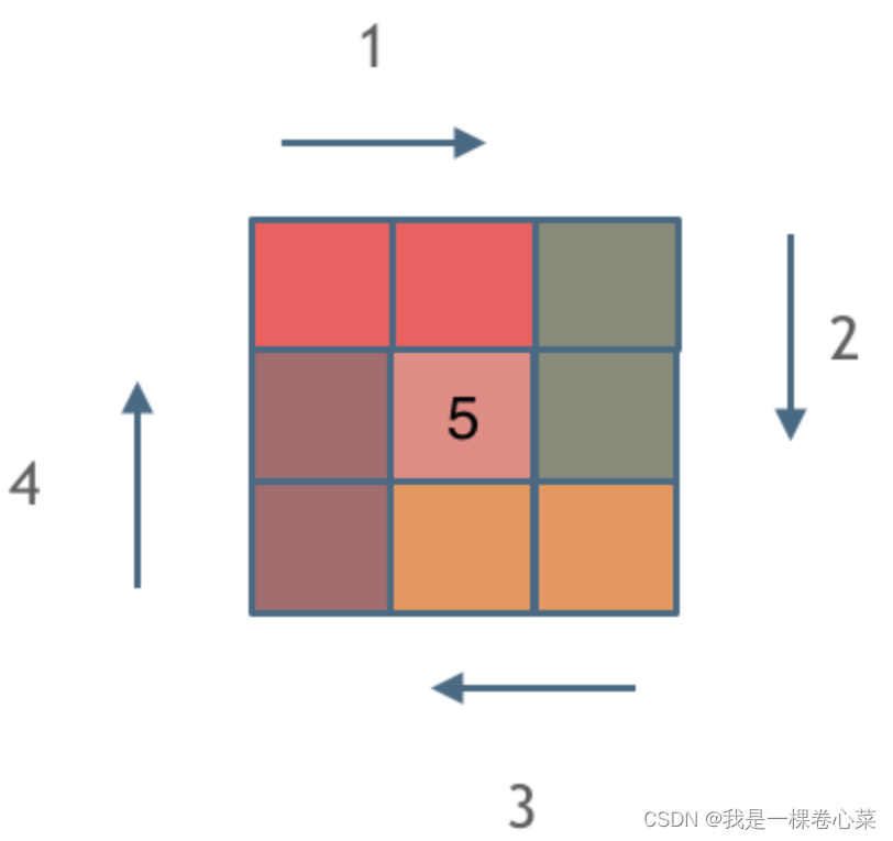 确定开闭原则:前闭后开矩阵上行填入值从左到右矩阵右侧填入值从上到下矩阵下行填入值从右到左矩阵左侧填入值从下到上