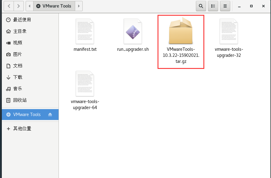 第四步:点击VMtools,打开后复制tar.gz