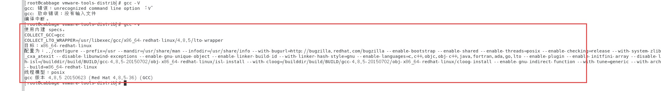 检查一下gcc是否安装成功,查看其版本