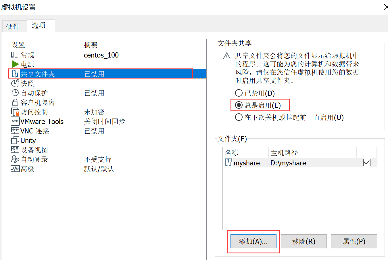 首先点击使用的虚拟机,右击设置,然后点击共享文件夹,选择添加,把自己想要共享的文件夹添加进去就可以了