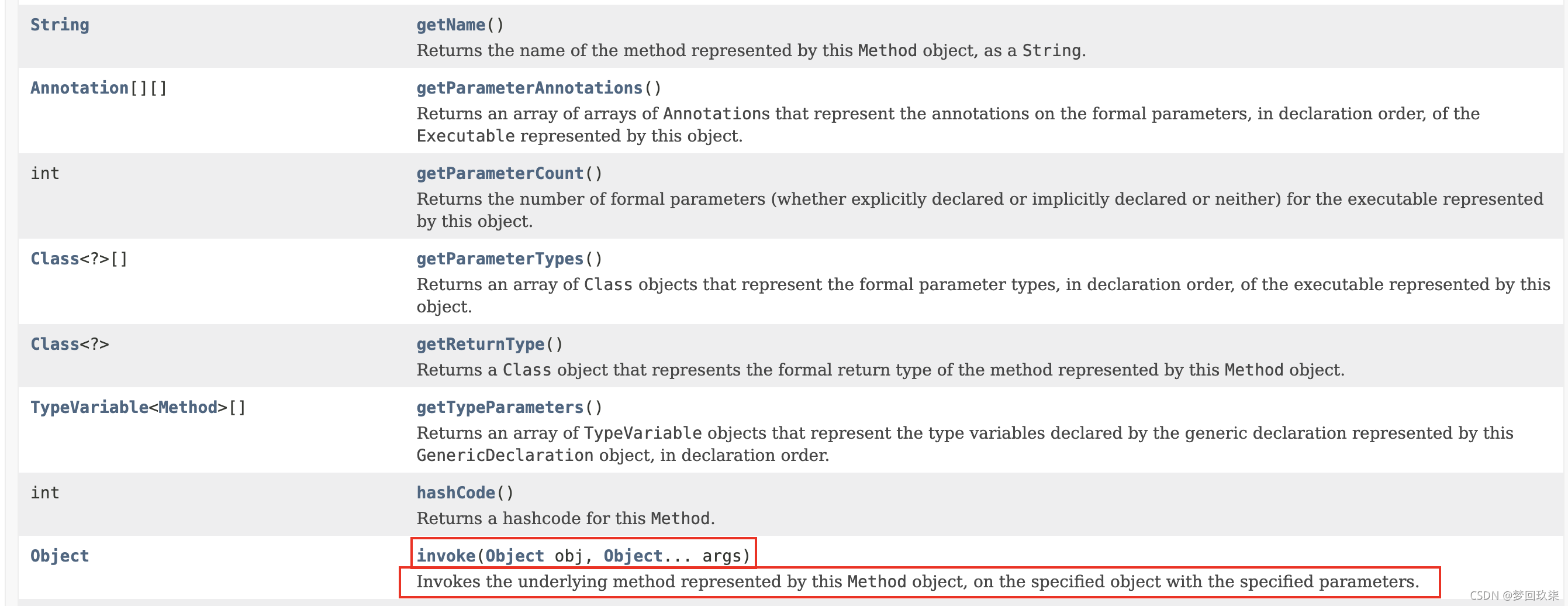 - 因为main方法时静态方法,所以使用放射获取方法时,方法名可以写null.