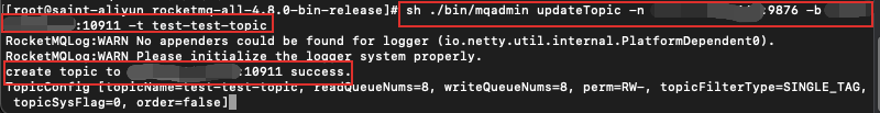 sh ./bin/mqadmin updateTopic -n localhost:9876 -b localhost:10911 -t test-test-topic