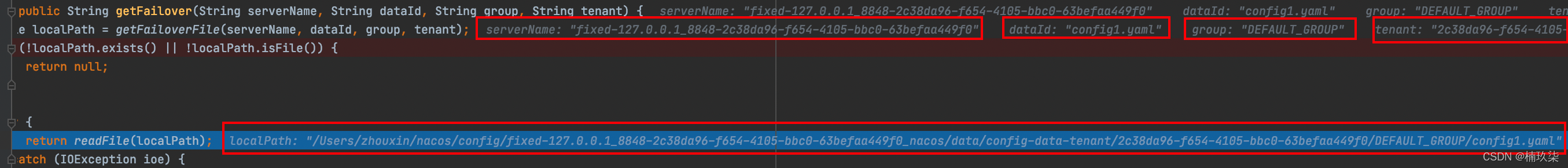 分析完SpringBoot启动加载Nacos配置的流程,我们注意到它会优先使用LocalConfigInfoProcessor.getFailover()加载Nacos的本地配置文件,文件路径如下: