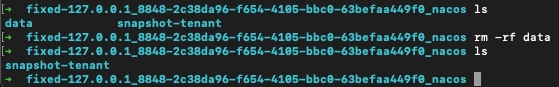 进入到/Users/zhouxin/nacos/config/fixed-127.0.0.1_8848-2c38da96-f654-4105-bbc0-63befaa449f0_nacos目录,先把我们手动添加的文件目录全部删除;