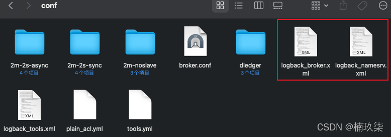 解压rocketmq-all-4.8.0-bin-release.zip文件,然后进入到./rocketmq-all-4.8.0-bin-release/conf目录下,可以看到logback_broker.xml、logback_namesrv.xml两个文件:
