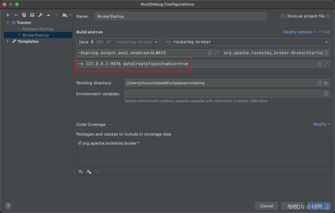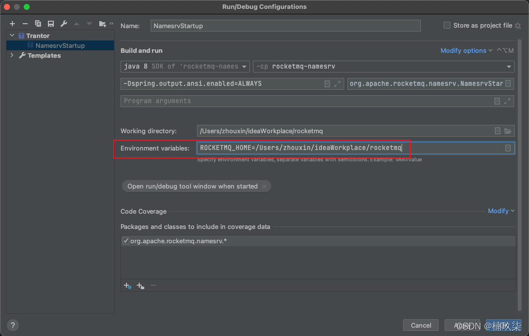 或者我们可以选择直接在Environment variables中配置ROCKETMQ_HOME: