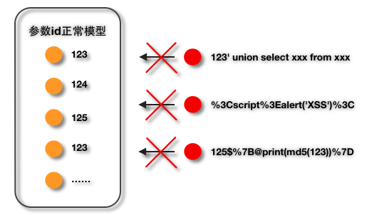 假设有这样一条url:www.xxx.com/index.php?id=123。如果我们拉出所有这条url的访问记录,不难发现:正常用户的正常请求虽然不一定完全相同,但总是彼此相似;攻击者的异常请求总是彼此各有不同,同时又明显不同于正常请求。