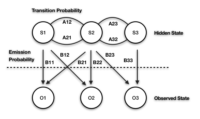 在模型原理部分我们提到观测序列与隐含序列的对应关系,但在工程实现中这样去做,会存在很大的问题 。比如训练集中id参数的观测序列全为「123abc」,相应的隐含序列为「NNNAAA」,训练好模型后,待检测序列为「124abc」。由于「4」这个观测状态不在训练集的状态空间中,所以会被直接判定为异常。