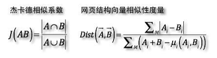 构造好低维实向量,接下来就该定义相似度计算了。直观上,欧式距离和余弦距离是最容易想到的两种计算向量相似的距离。但是对长网页欧式明显不公平,而余弦只关注向量夹角的差异性不关注绝对长度上的差异,也就是说只关注tag之间的比例而非绝对数值,又会存在存在对长网页过分抑制。所以综合考虑,我们借鉴杰卡德相似的思想,定义伪距离如下,表达的物理意义为两个网页相同部分与不同部分的比值。