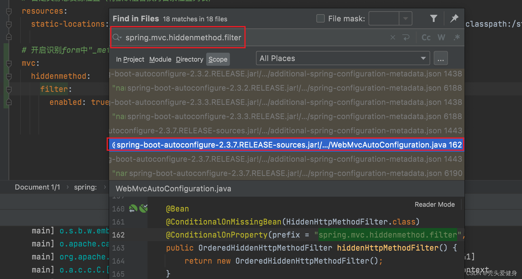 全局搜索spring.mvc.hiddenmethod.filter,进入到WebMvcAutoConfiguration类中: