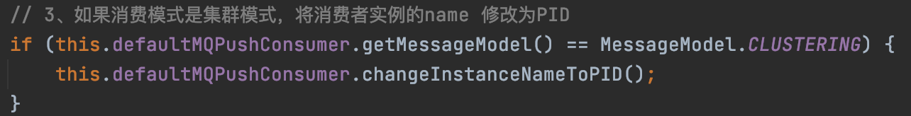 (4)第三步:判断消息传播方式是否为集群模式,是就将消费者实例的name 修改为PID。