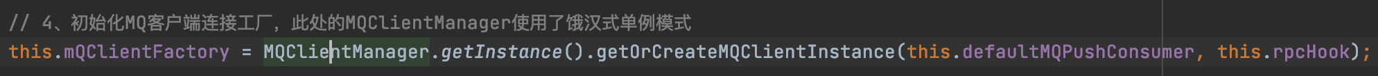this.mQClientFactory = MQClientManager.getInstance().getOrCreateMQClientInstance(this.defaultMQPushConsumer, this.rpcHook);