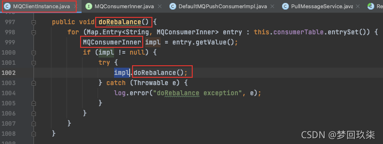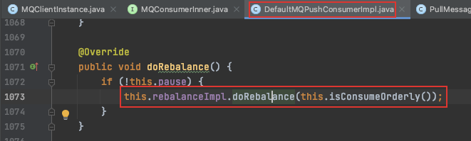在MQClientInstance#doRebalance()方法中,它未当前JVM下所有consumer做负载均衡操作,通过调用MQConsumerInner的doRebalance()方法。