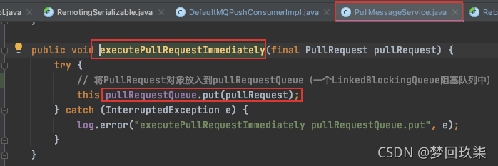 1、pullRequestQueue(LinkedBlockQueue)中的PullRequest对象是在什么时候放入的?