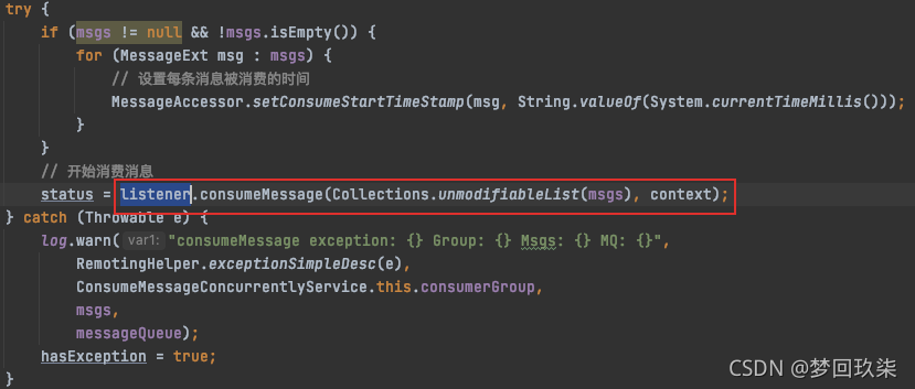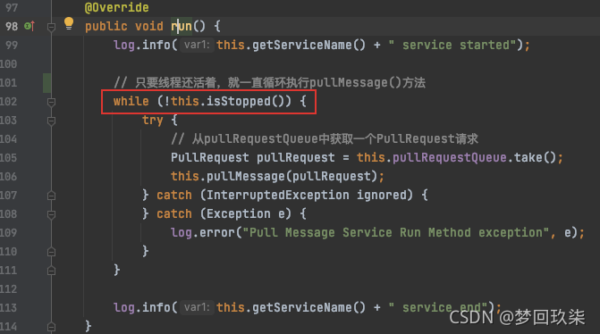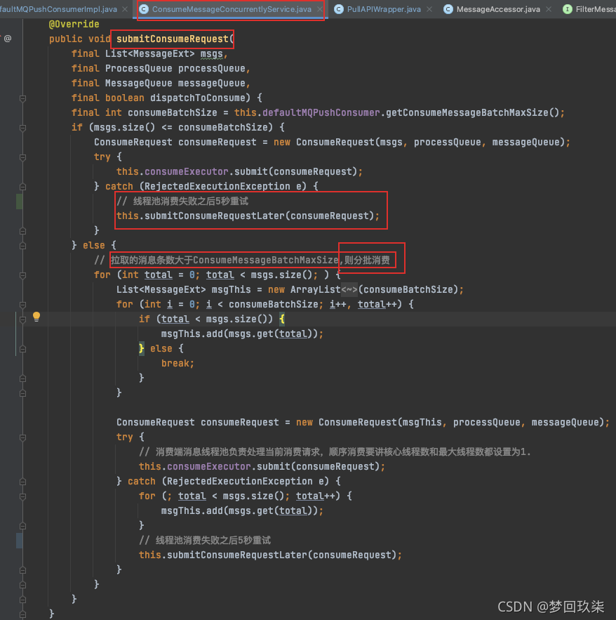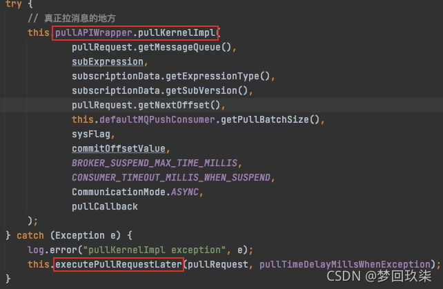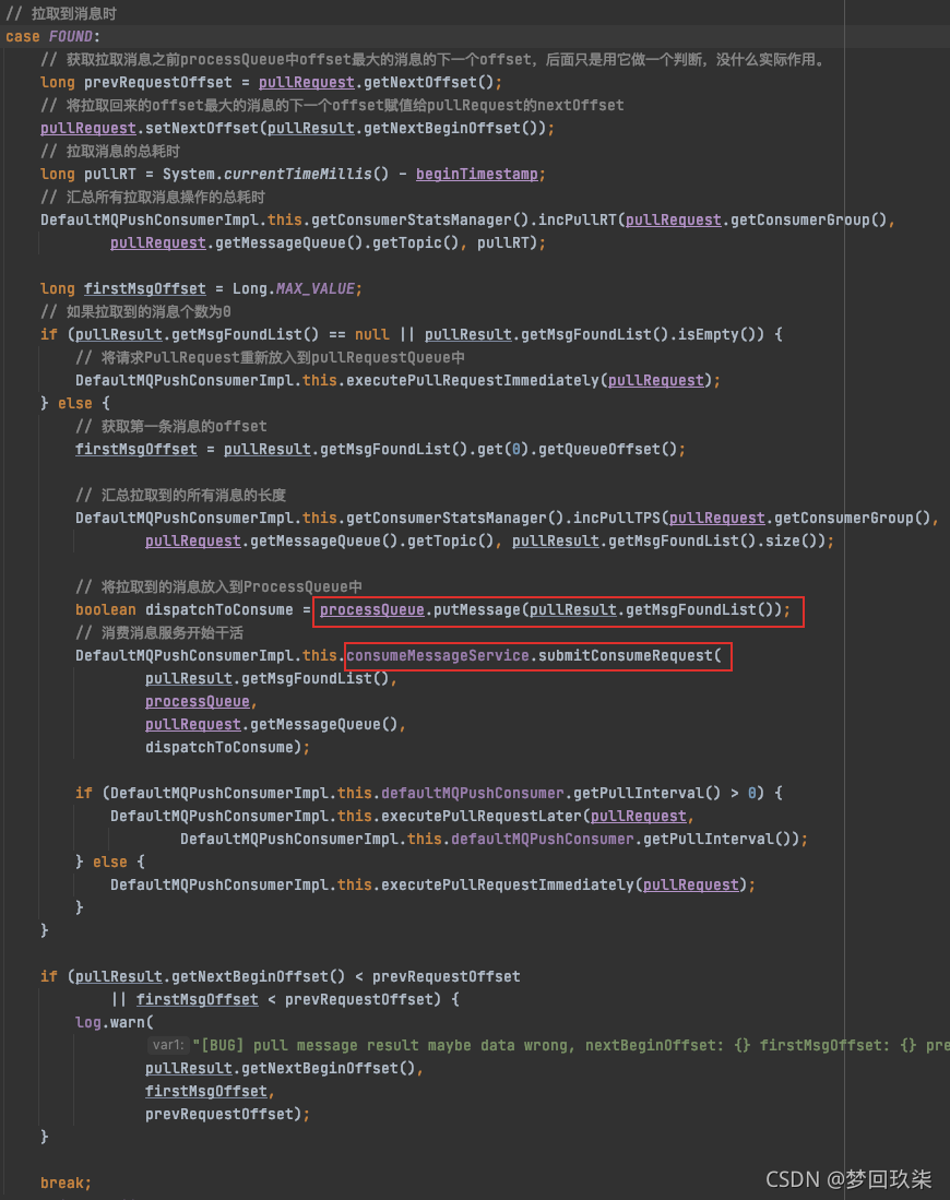 DefaultMQPushConsumerImpl#pullMessage()方法中,