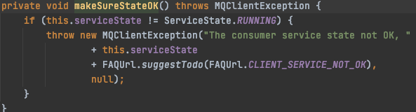 0)消费者服务状态不是RUNNING,延时3s将pullRequest放入pullRequestQueue中。
