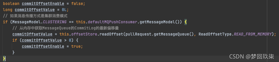 (6)如果消息传播方式是集群消费模式,则从内存中获取MessageQueue的CommitLog的最新偏移量