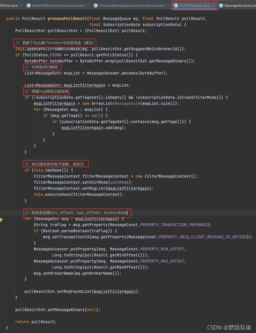 对消息的处理体现在PullAPIWrapper#processPullResult()方法中: