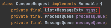 与非顺序消费的区别是顺序消费的ConsumeRequest只针对ProcessQueue和messageQueue,而不是针对消息。其获取消息的逻辑是直接从ProcessQueue中取,一次取consumeMessageBatchMaxSize个(默认一个)。