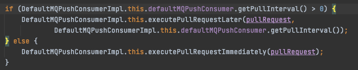 6.2)如果有消息返回,并且拉取时间间隔pullInterval大于0,则延时pullInterval ms之后将pullRequest放入到PullRequestQueue中。否者立即放入。