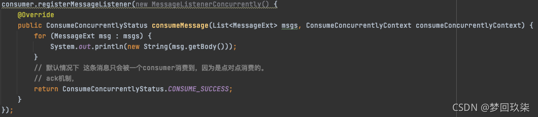 也就是我们业务系统定义的消费监听器,负责具体消息的消费。例如: