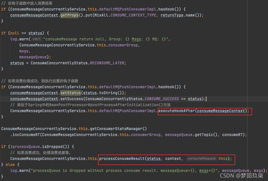 run part4:执行消息消费钩子方法,并根据消息消费结果(成功或失败)处理消费进度。