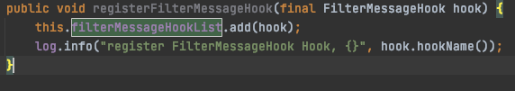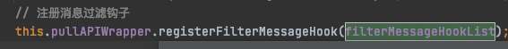 在消费者启动的时候(DefaultMQPushConsumerImpl#start()),会将所有的消息过滤钩子通过PullAPIWrapper#registerFilterMessageHook()方法注册。