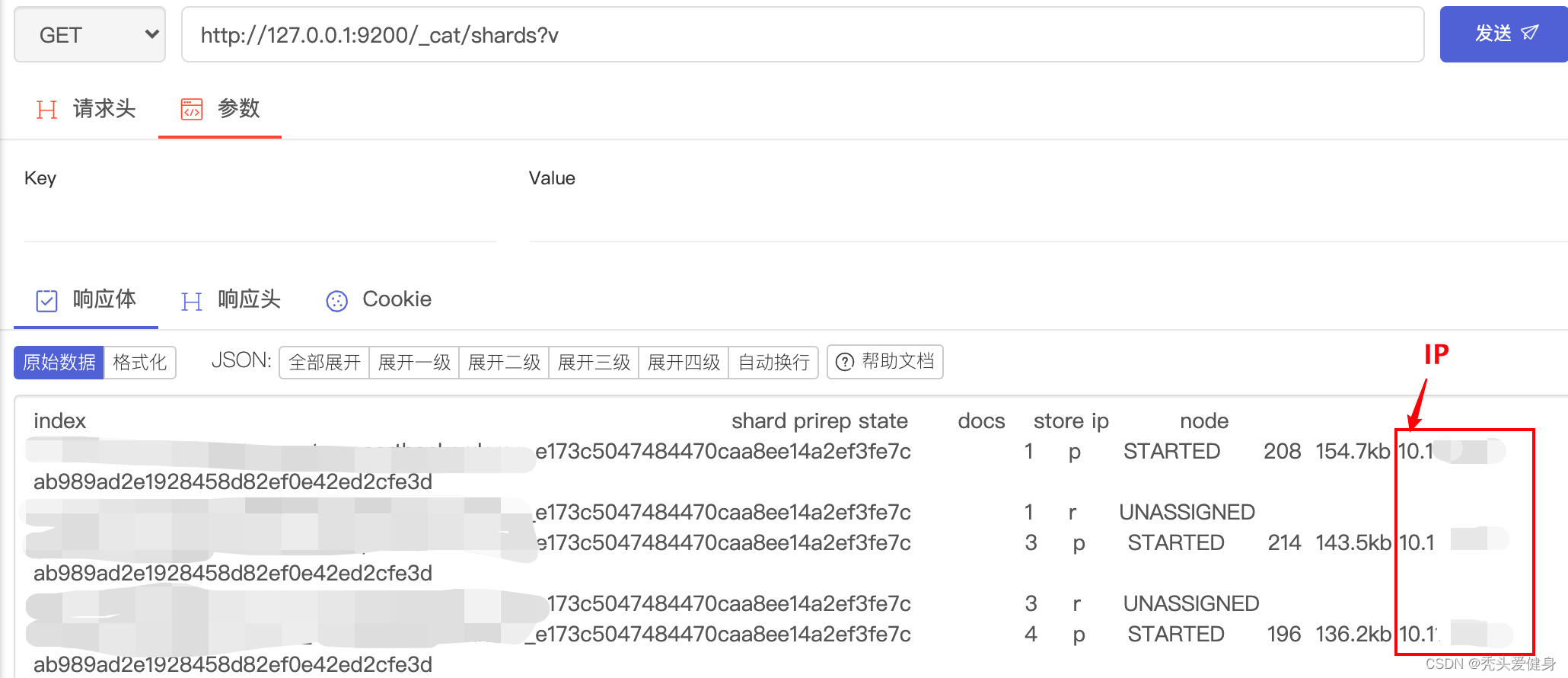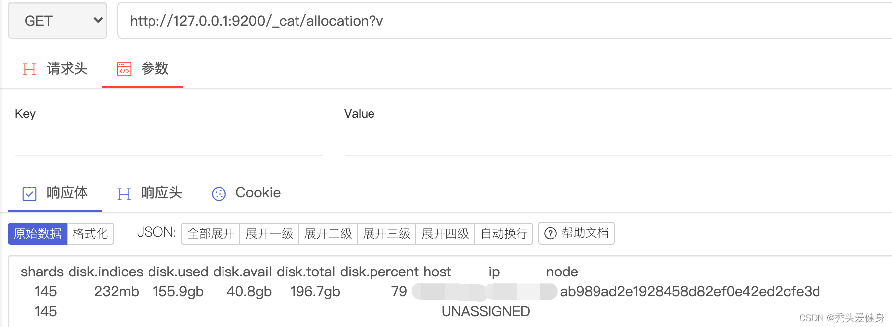 2)查看集群中每个节点的分片数量、磁盘占用情况