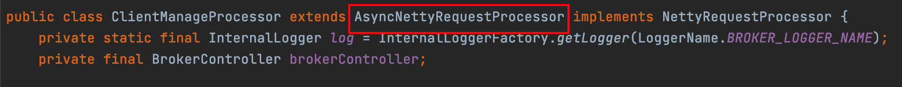 因为ClientManageProcessor是AsyncNettyRequestProcessor的子类,所以会走asyncProcessRequest()方法异步处理请求。