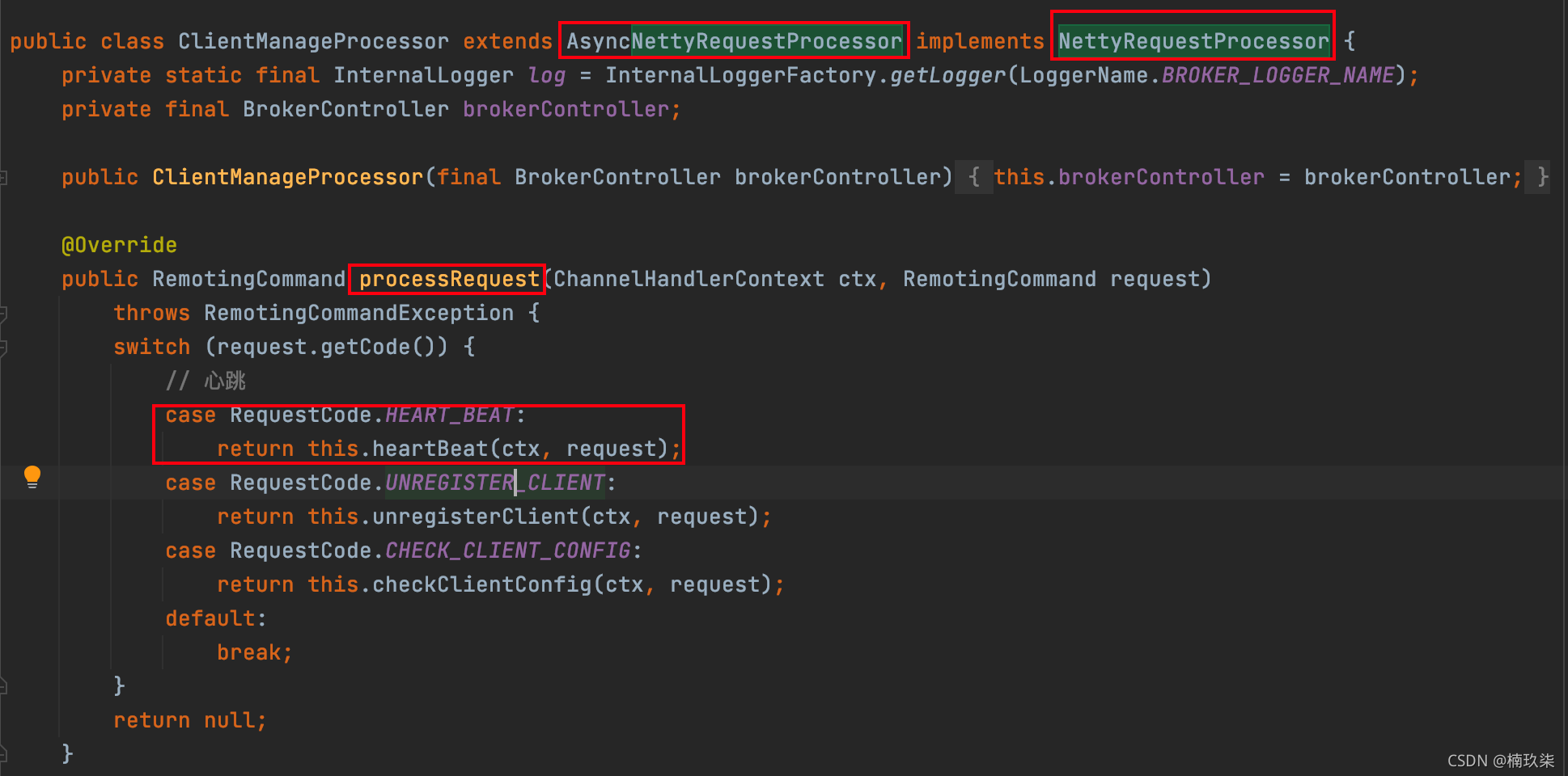 Broker处理心跳也就在ClientManageProcessor#processRequest()中:
