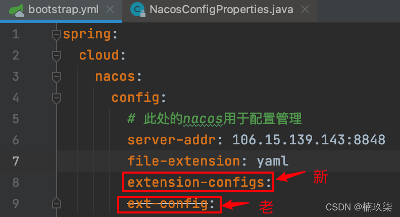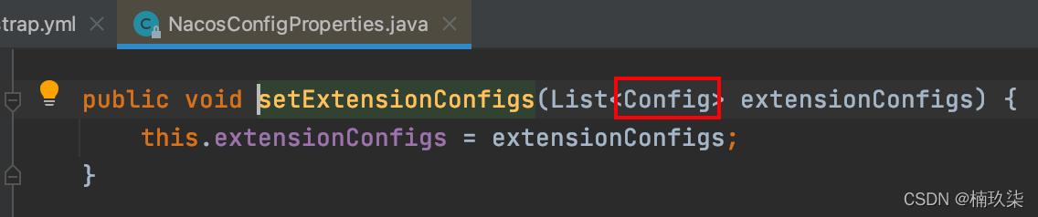 (1)在bootstrap.yml文件中按住command 鼠标左键点extension-configs,进入如下源码:
