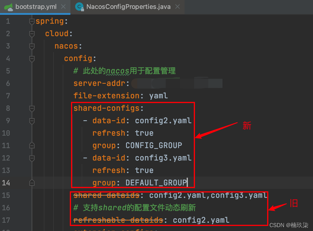 2、老版本yaml使用shared-dataids根据DataID加载配置信息、使用refreshable-dataids实现指定DataId配置信息的动态刷新;