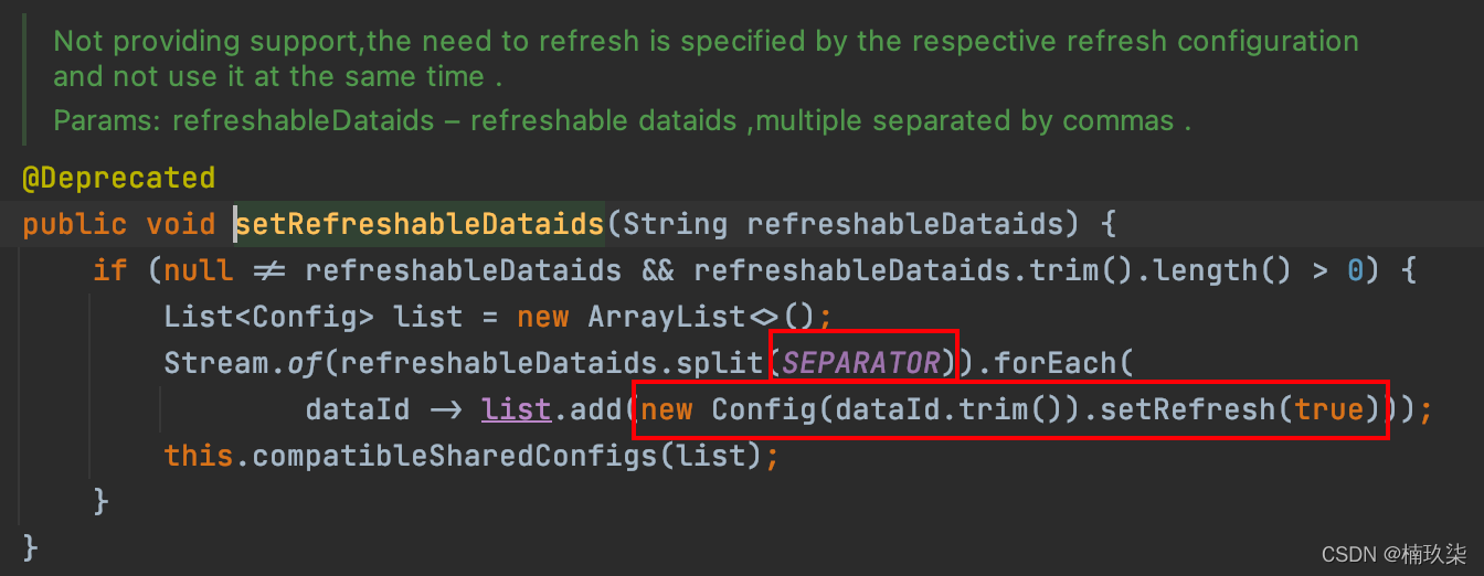 它也只是将拆分出的所有dataId对应的Config的refresh属性设置为true,也不牵扯到group。