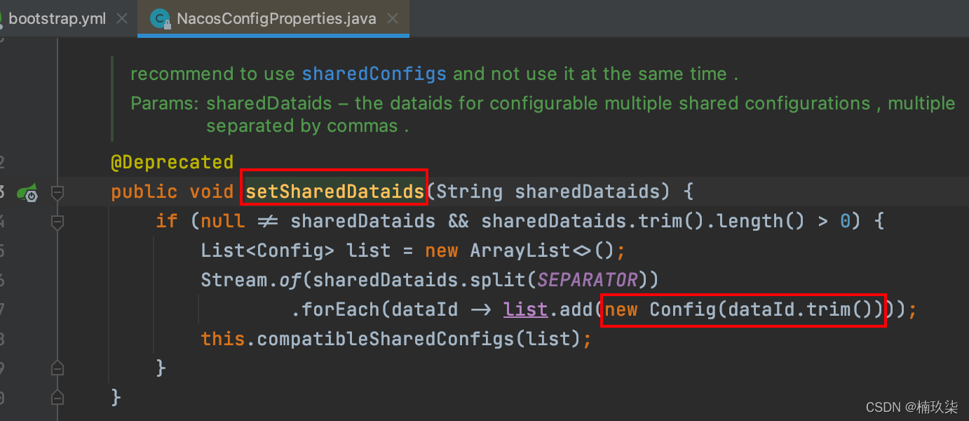 (1) 在bootstrap.yml文件中按住command 鼠标左键点shared-dataids,进入如下源码: