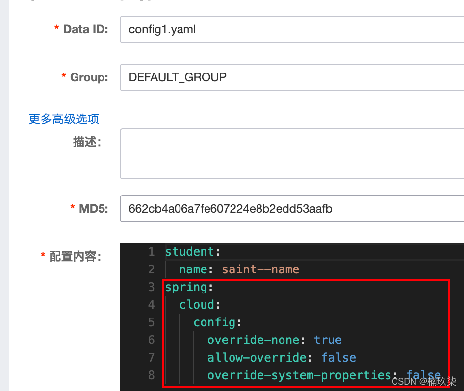 name: config1 # 配置名,即Nacos dashboard中的Data id