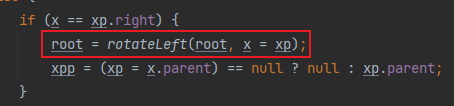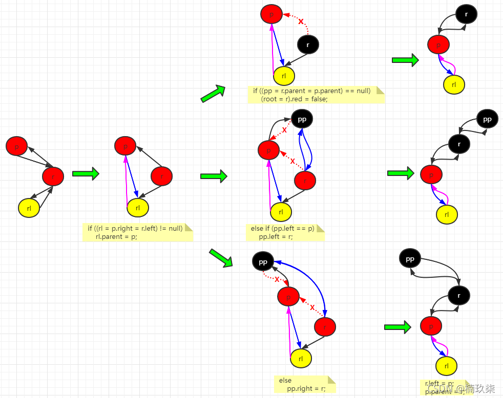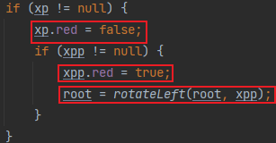 TreeNode<K,V> r, pp, rl; // r为p的右子节点,pp为p的父节点,rl为r的左子节点