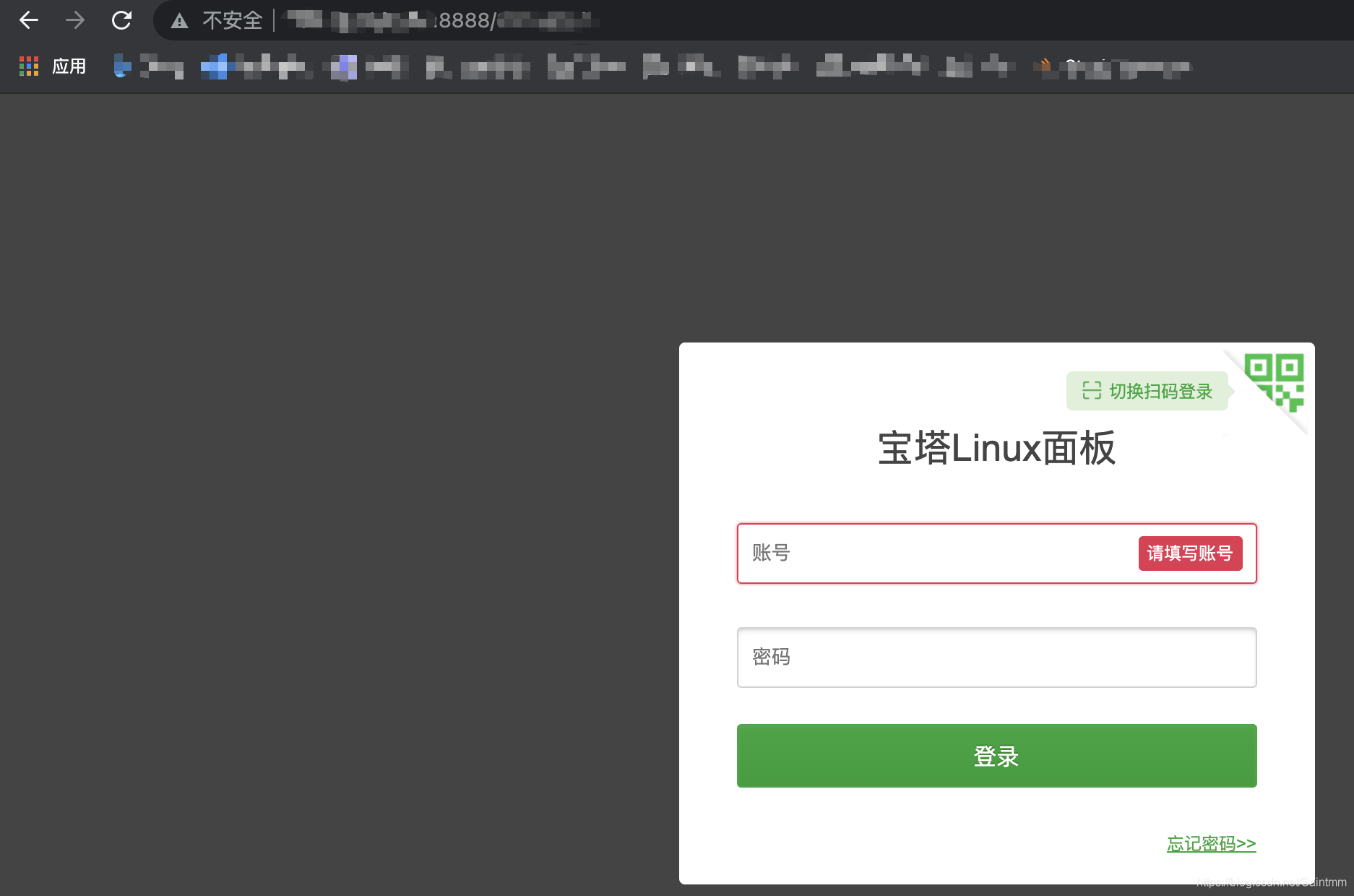 最后,我们再访问http://云服务器公网IP地址:8888,已经可以访问了,只需要输入用户名、密码即可进入宝塔。账户密码为我们安装baota成功后的临时用户名和密码。