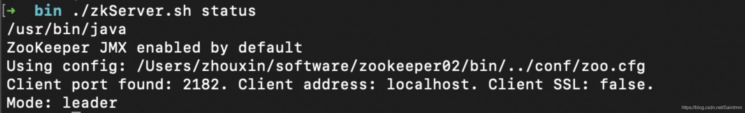 查看zookeeper02实例的状态,发现其已经是集群的leader: