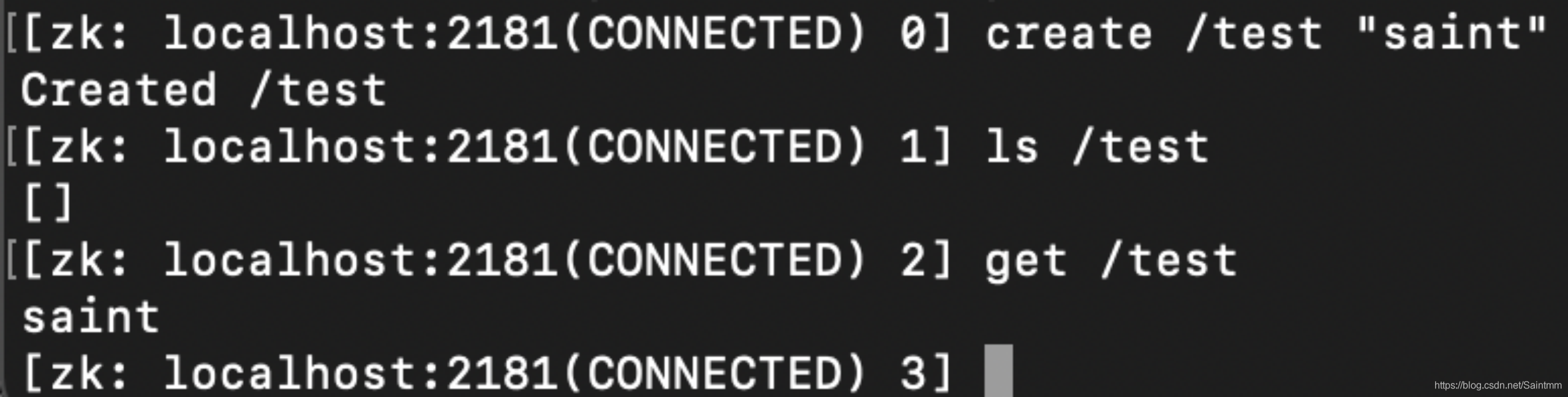 此时,我们在进入zkCli,发现已经可以正常加入,证明集群已经对外提供服务了: