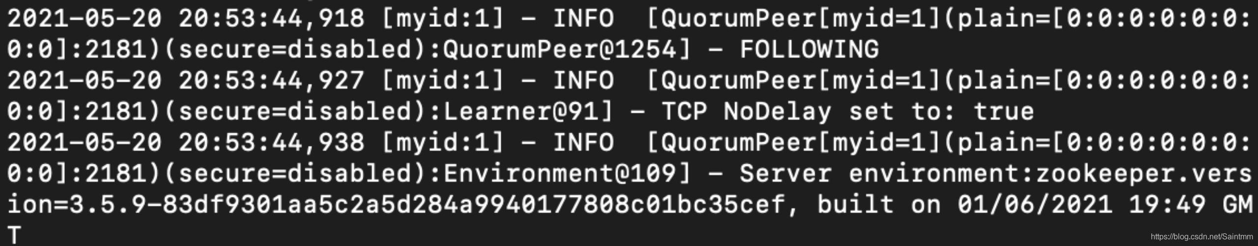 再观察zookeeper01服务的日志,发现其做为follower加入集群中: