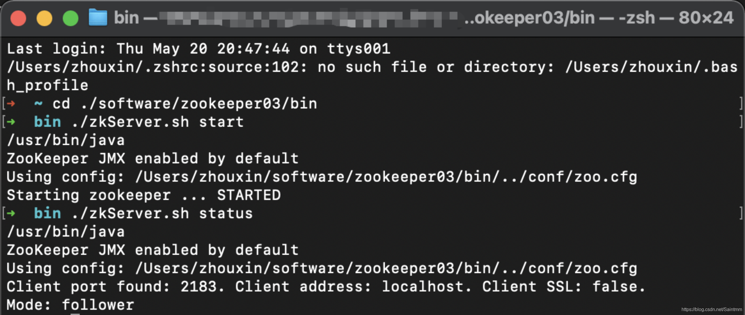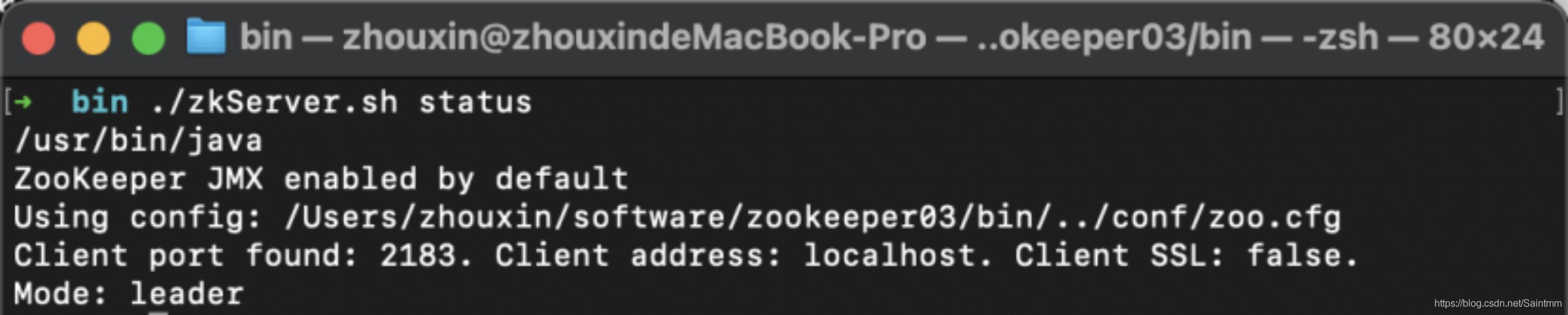 此时zookeeper01的服务状态: